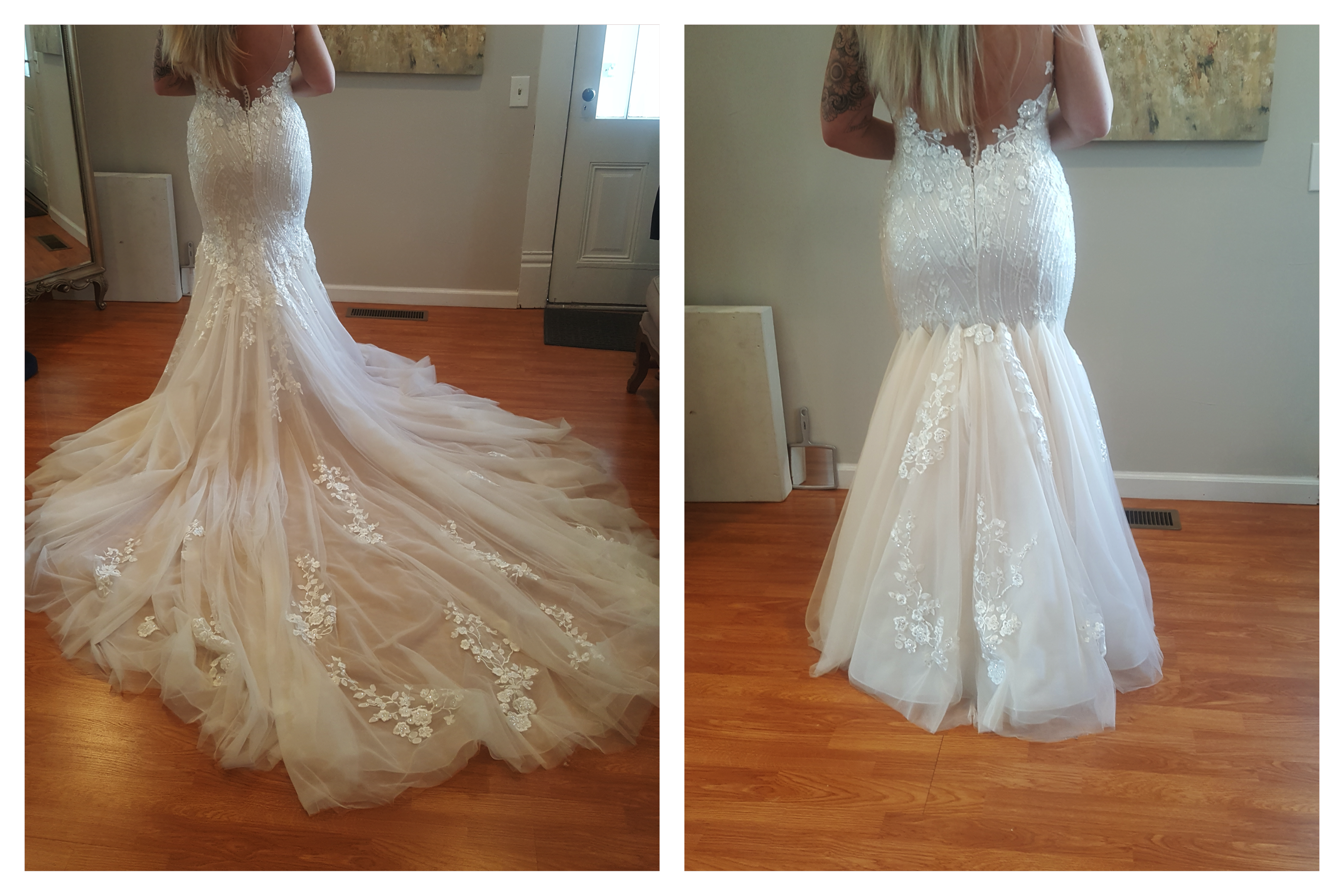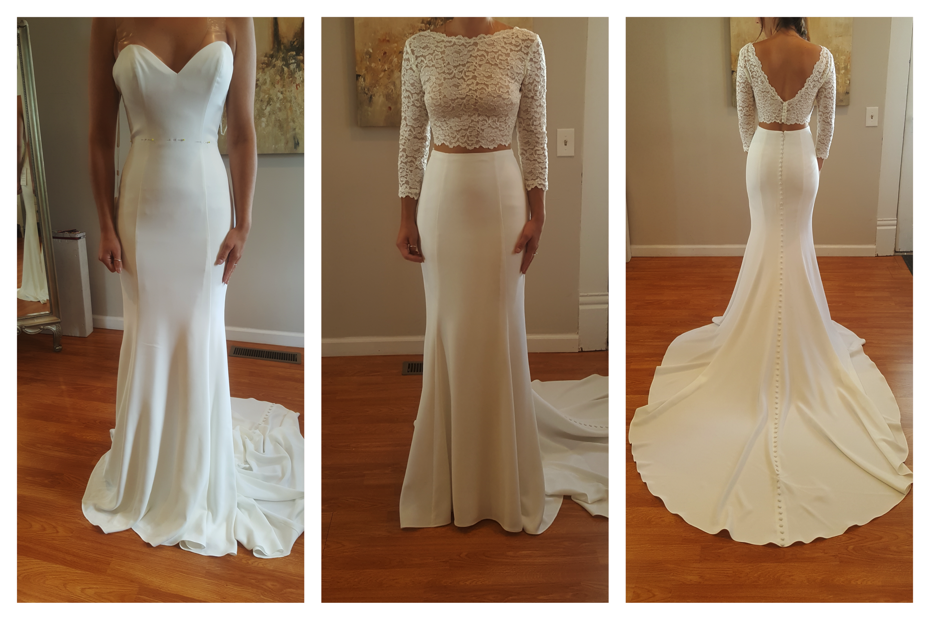 We specialize in wedding dress customizations and want your dress to fit like a glove. We can also replace or remove sleeves, design a custom bolero, and create many bustle styles.